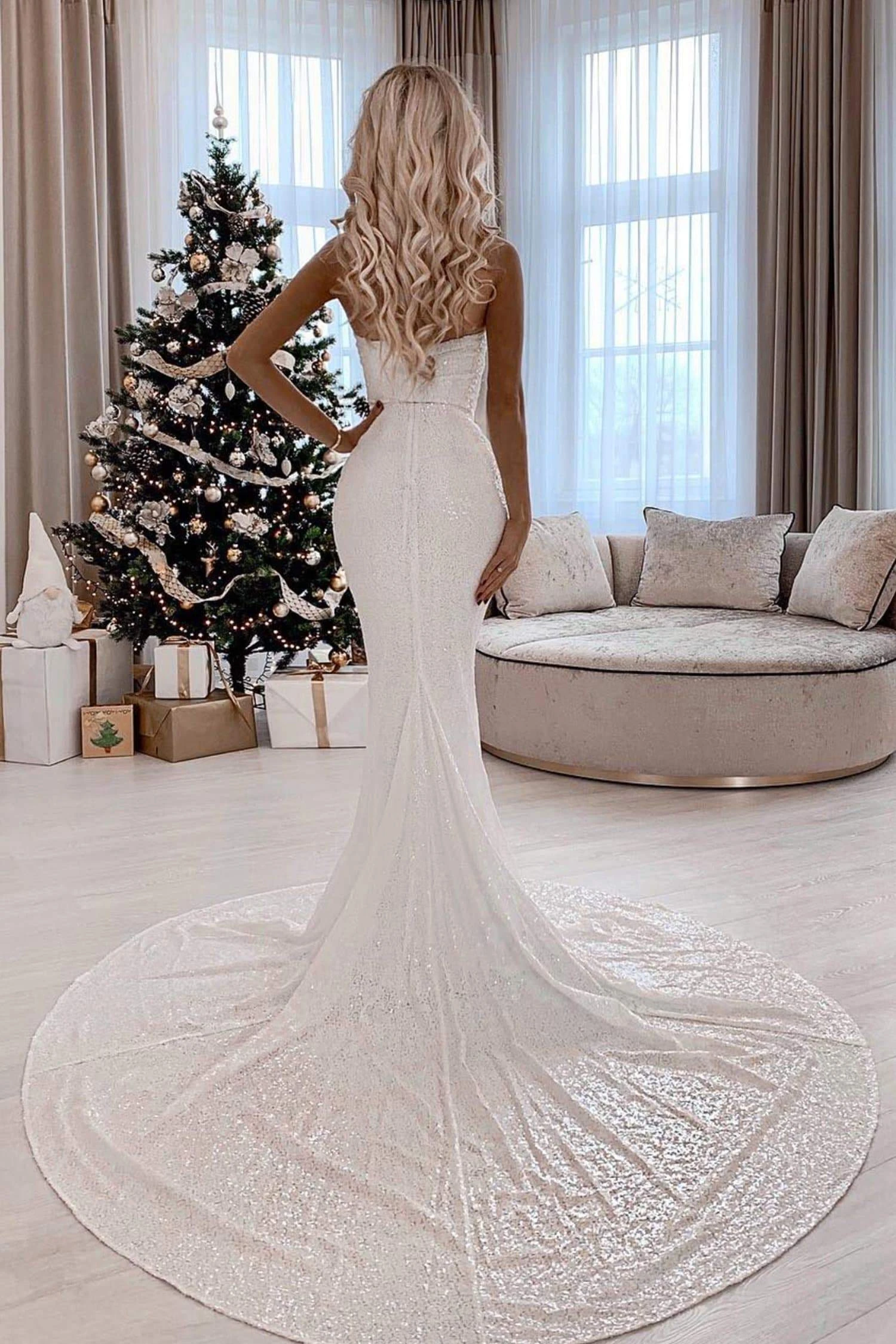 This season’s hottest cut v-shaped neckline. The Acel gown is embellished with sparkly sequins and has a full length sweep train. Also featuring a padded bust for the perfect fit. This gown is suitable for special occasion such as engagements & wedding celebrations. Item runs big so please go down a size for the perfect fit.