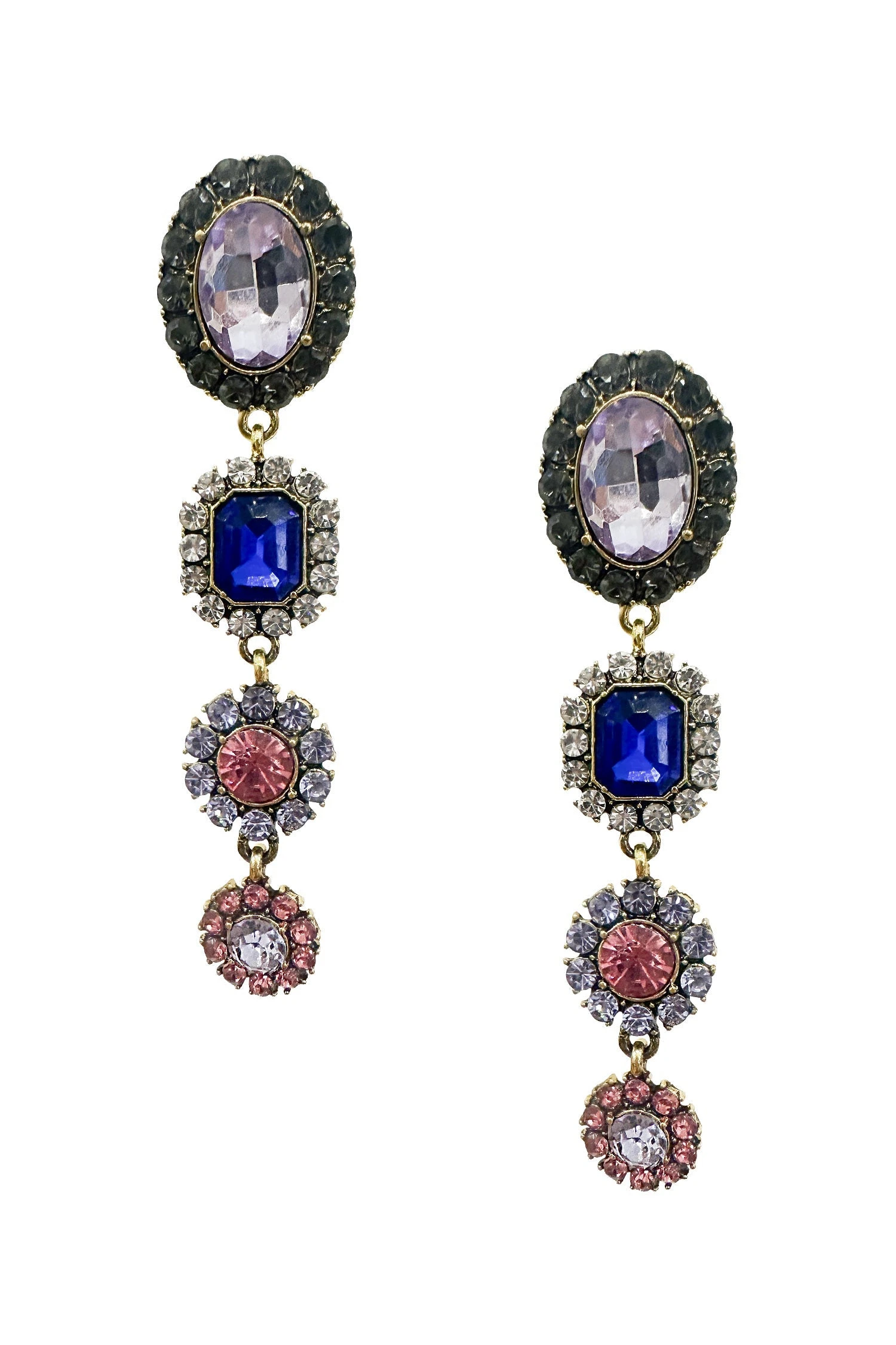 The Anthea Earrings & Necklace Set adds personality to your favourite ensemble. Featuring multicoloured gems and diamantes on a gold hardware. These unique pieces will elevate any look.