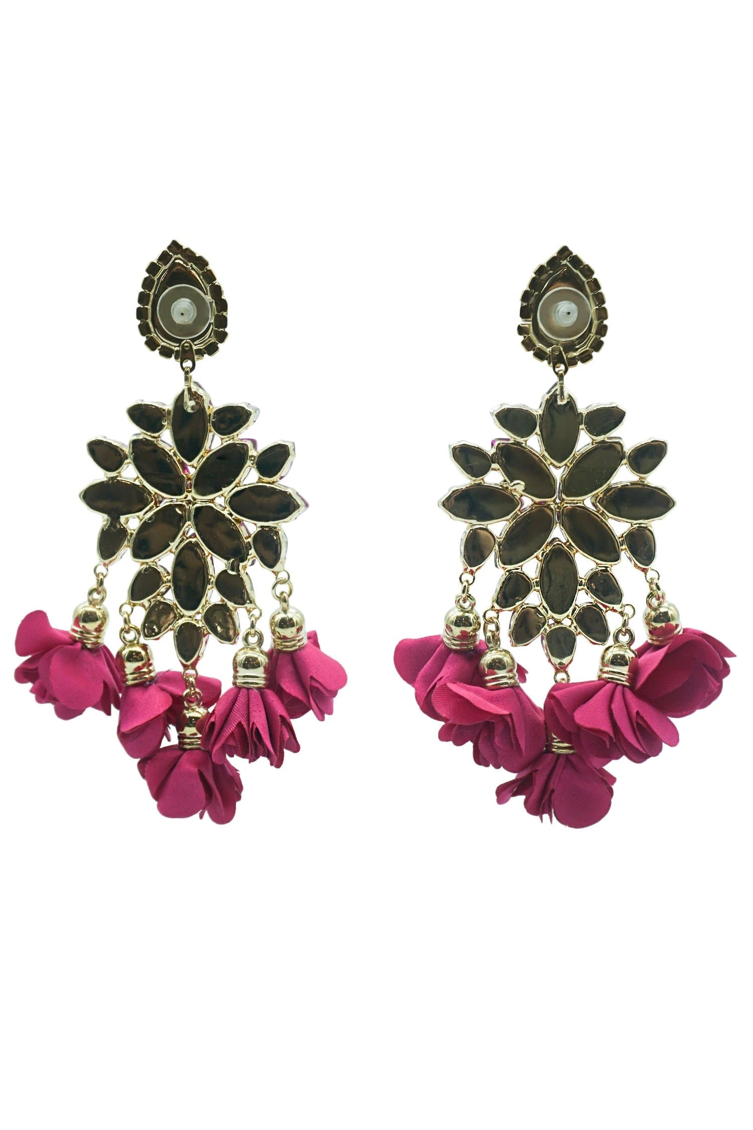 The Cecily Fuchsia Flower Drop Earrings is one of many new additions to our earring collection. Embellished with pink crystals and flowers pieces, these earrings will be sure to make a statement.Â