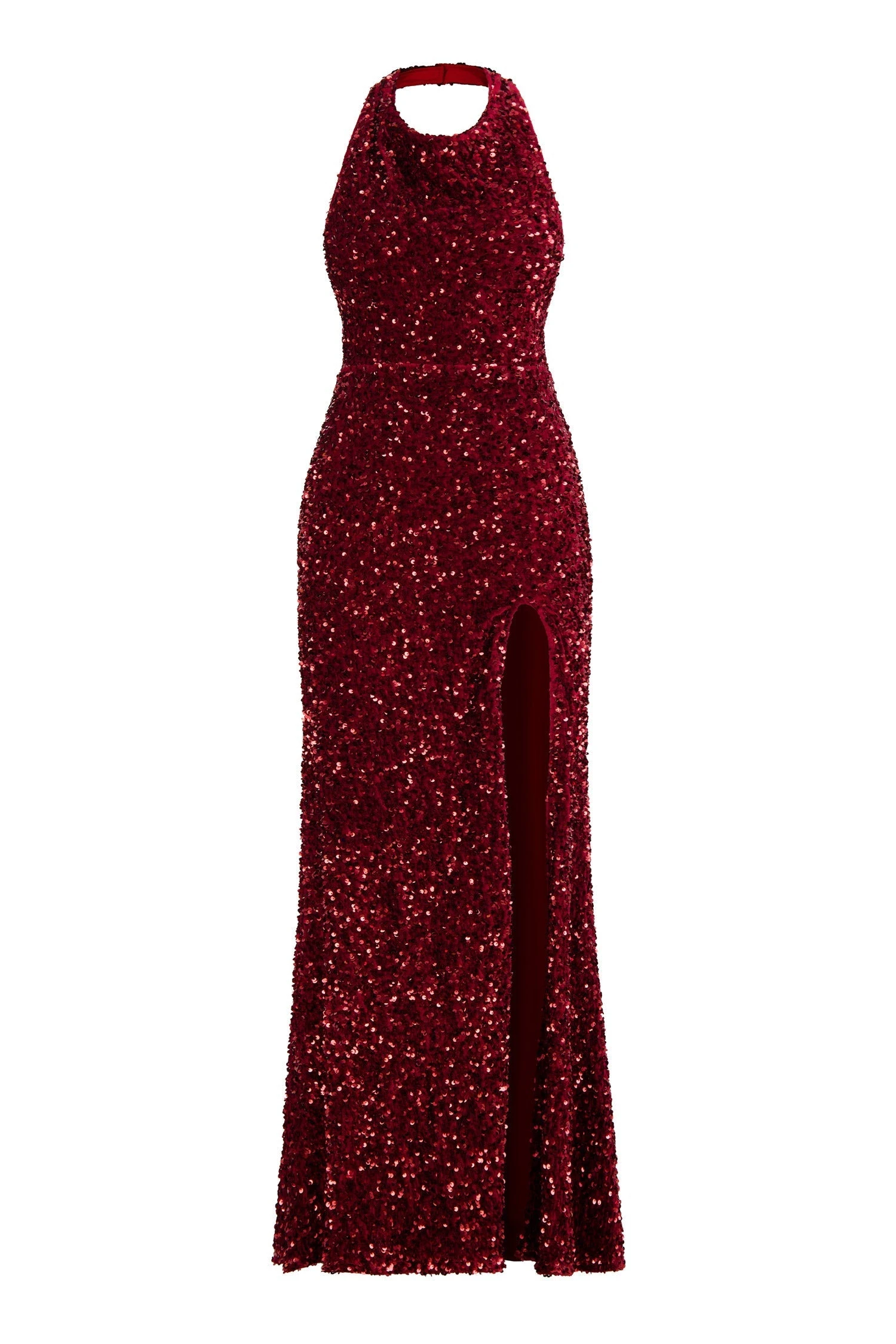Classy and elegant, the Jenny was made after our best-selling Blanche dress. This glamorous version was made for your gala or wedding! Jenny is made from a stretchy velvety sequins fabric. It was designed with a cowl neck, open back and a high split for easy movement. It also boasts a waistline to accentuate your curves. Jenny is suitable for events such as black tie galas, school formals, birthday celebrations or any glamorous event that you want to dazzle in!