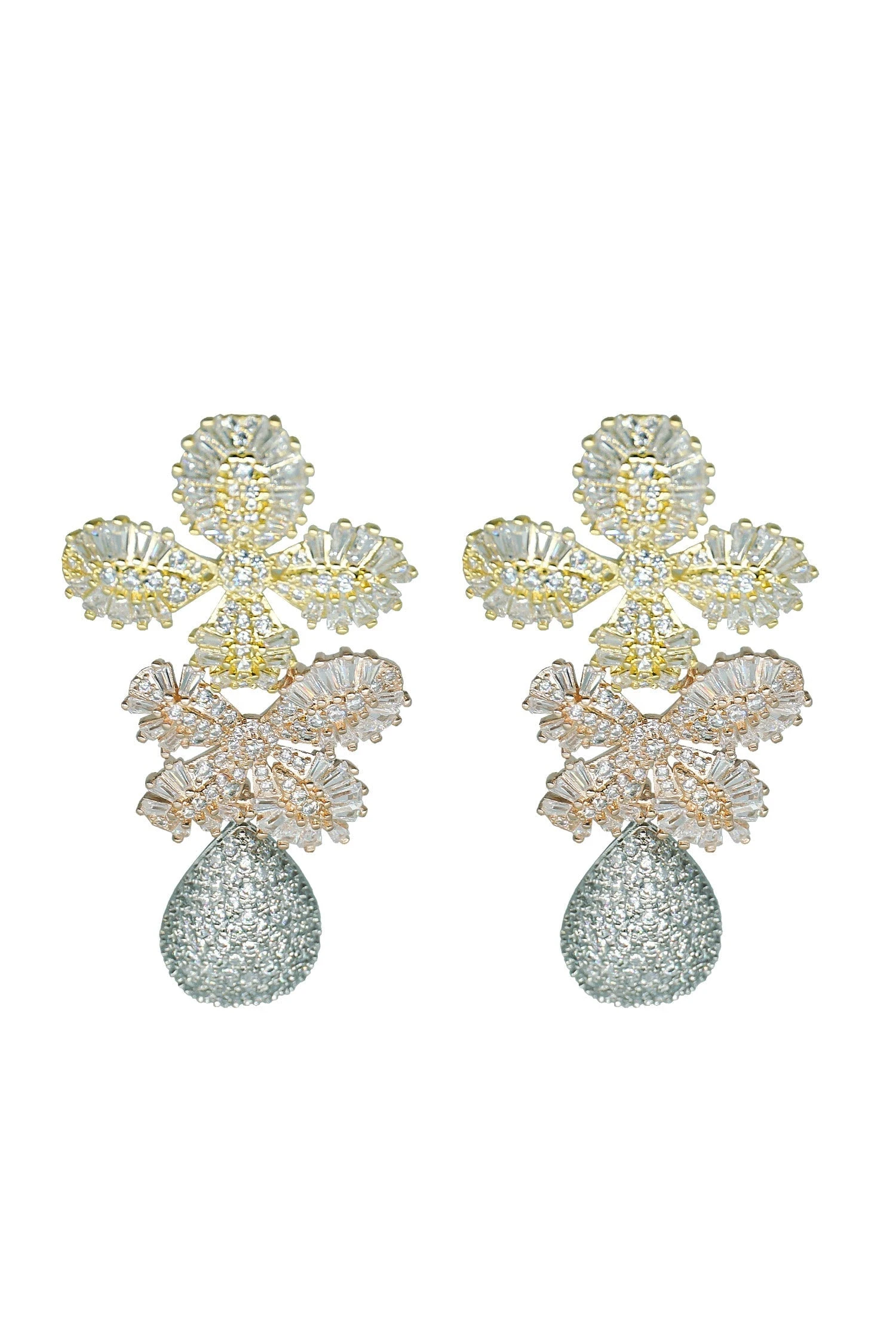 TheĀ LiliĀ Earrings bring forth an essence of luxury with its encrusted multicoloured floral trio. Rendered from silver, gold & rose gold hardware. These earrings areĀ essential for yourĀ opulent events.Ā