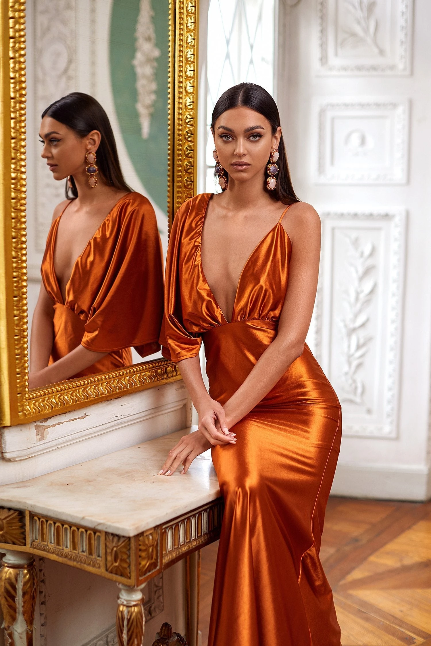 The Miriam Dress was designed to elevate your formal wear. With its chic asymmetrical design, fitted form, orange hue, and crafted from one of our favourite satin fabrics, this dress is so elegant.