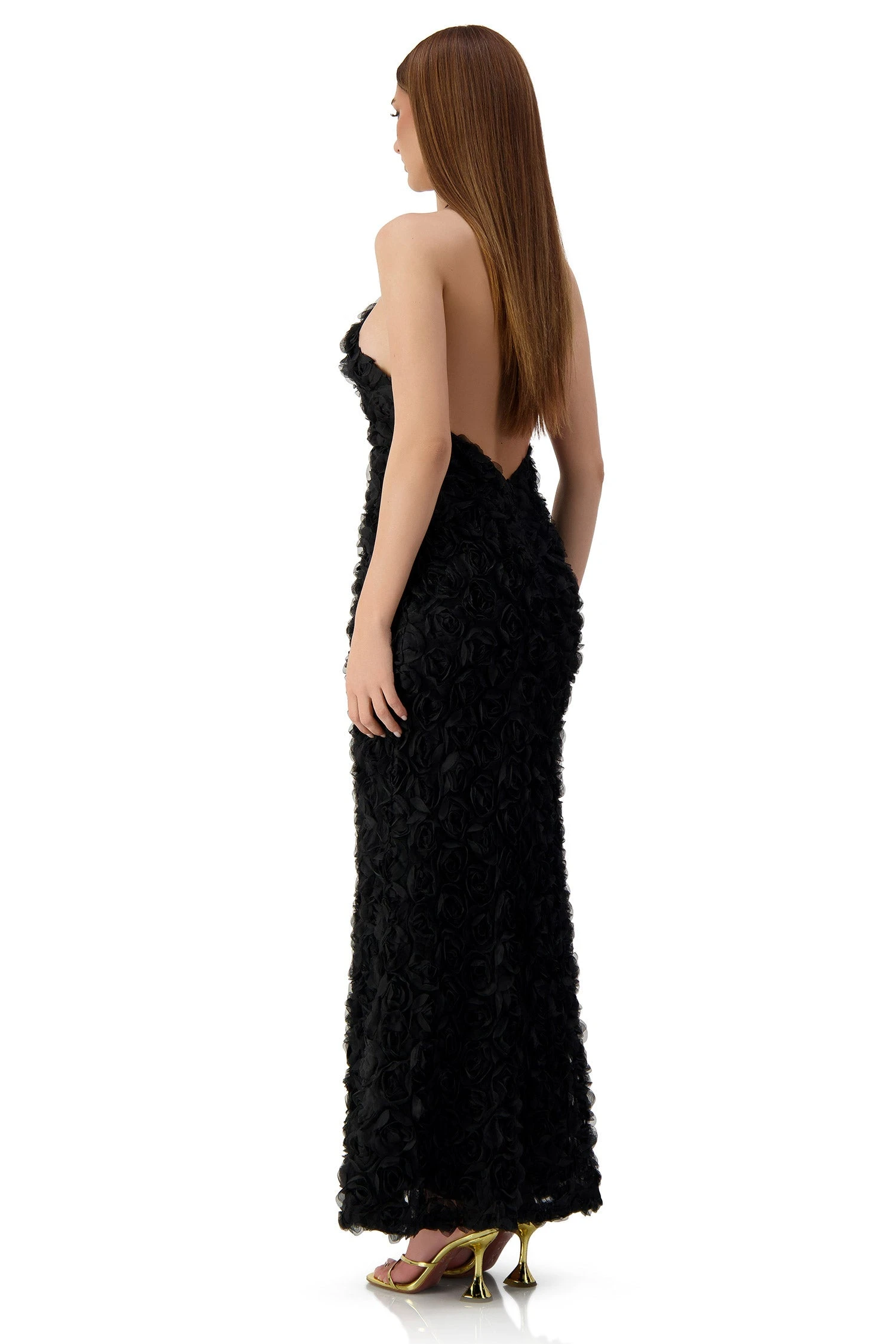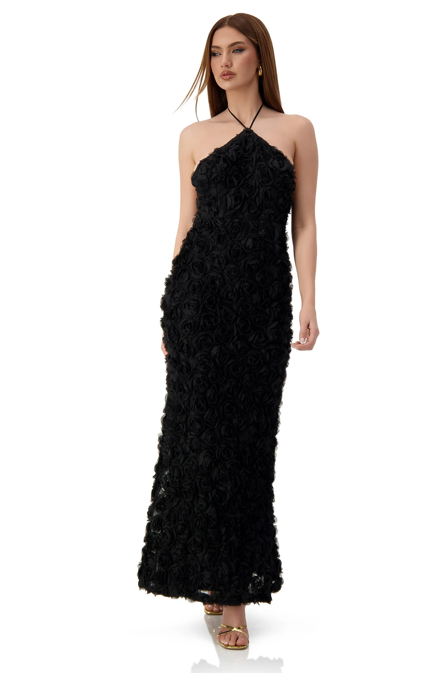 Sacha is designed for the ultimate glamorous events and parties, to ensure you look extraordinary at any event you attend. Beautifully crafted from a unique and high quality rose floral applique fabric, Sacha features a high neck design with thin spaghetti straps, an open back and a fitted mermaid silhouette. For a more comfortable fit, Sacha is lined with jersey.Â
