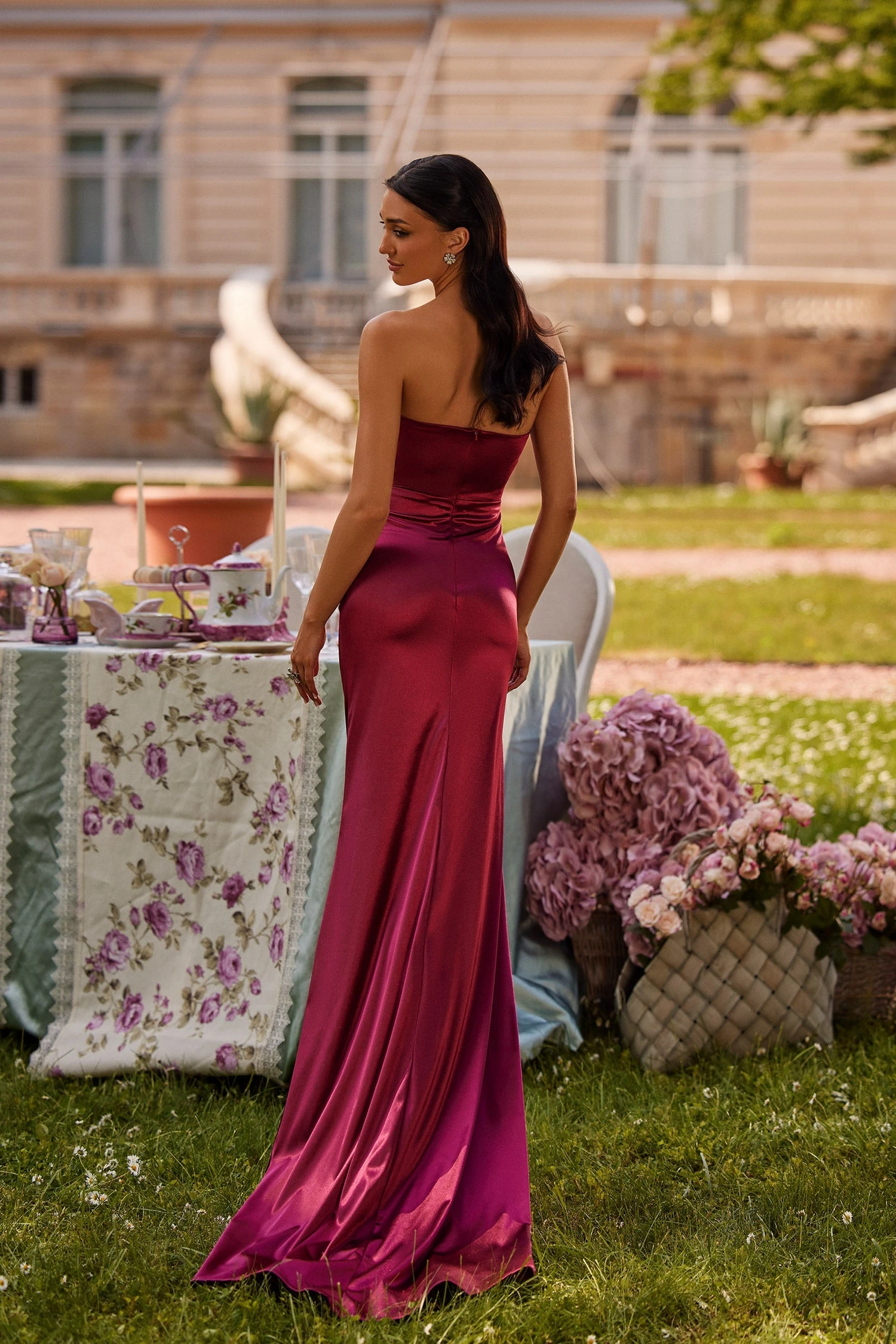 Simplistic sensuality is the honest way to describe the Sarah Gown. Designed with a strapless sweetheart neckline, a double waist cut-out and fitted silhouette. This style is cut from a soft satin fabric in a burgundy colour. The Sarah Gown will be favoured for all your upcoming events.